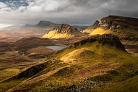 Rots van Quiraing, Trotternish schiereiland, Isle of Skye, Hooglanden, Schotland, Groot-Brittannië