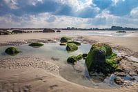 Rotsachtig landschap en strand van Kerfissien, Cléder, Finistère, Bretagne, Frankrijk