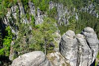 Rotsen bij de Bastei in het Elbezandsteengebergte in Saksisch Zwitserland in de lente