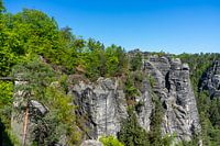 Rotsen bij de Bastei in het Elbezandsteengebergte in Saksisch Zwitserland in de lente