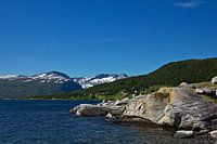 Koop de foto Rotsen bij de fjord van Anja B. Schäfer op canvas, aluminium dibond, (ingelijste) fotoprint, behang en ArtFrame, op maat geprint in Fine-Art kwaliteit.