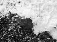 Rotsen aan de Oostzeekust op de Darß, gewassen door golven en van bovenaf genomen.