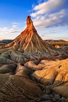 De Castil de Tierra is een spectaculaire rotsformatie en het oriëntatiepunt in het Bardena Reales Natuurpark in de provincie Navarra in Noord-Spanje. Als de zon laag aan de hemel staat, krijgen de afzonderlijke rotslagen een intense kleur en doen ze denken aan het Wilde Westen.