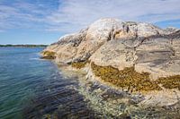 Een prachtige rotsformatie met kraakhelder water op het mooie Hitra in Noorwegen.