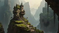 een rotswoning in de Andes, hoog op een rots gebouwd