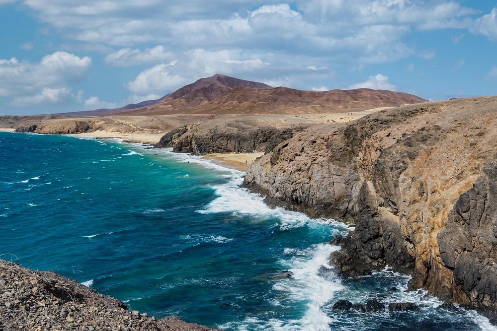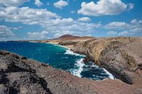 De unieke bruine en lichtblauwe tinten van het rotsachtige landschap harmoniëren perfect met de helderblauwe lucht en creëren een onvergetelijke sfeer die je zintuigen zal betoveren. Onze fotografie legt deze magische sfeer vast en brengt de schoonheid van Lanzarote bij je thuis. De combinatie van ruige kliffen, kalme lagunes en levendige golven maakt deze foto een perfect middelpunt voor je woonkamer of kantoor.