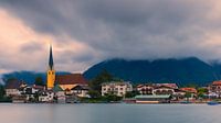 Een zomeravond en zonsondergang met zware bewolking bij Rottach-Egern, een plaats in de Duitse deelstaat Beieren aan de Tegernsee, deel van Landkreis Miesbach.
