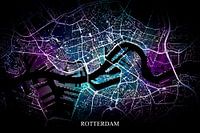 Rotterdam - Abstracte Plattegrond in Zwart Paars Blauw