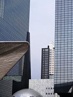 Drie foto's over de Puntzak aka Haaietand aka Kapsalon van het nieuwe Rotterdam Centraal Station in relatie tot het Gebouw Delftse Poort.