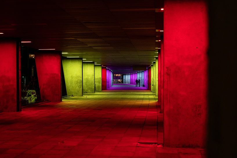 Een kleurrijke onderdoorgang in Rotterdam, vastgelegd in natuurlijke lichtomstandigheden.