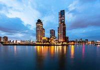 Avondfoto van de Rijnhaven Rotterdam met de Wilhelminapier centraal. Kort na zonsondergang genomen vanaf Katendrecht.