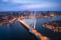 De Rotterdamse Erasmusbrug gezien vanaf grote hoogte, namelijk vanuit het gebouw de Rotterdam.
