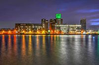 Rond de Rotterdamse Rijnhaven zijn in de laatste decennia de havenactiviteiten steeds meer vervangen door andere stedelijke functies als woningen, kantoren en horeca. Maar de graansilo van de firma Codrico op het schiereiland Katendrecht is nog steeds in bedrijf. Vooral 's avonds levert dit monumentale industriële complex, met de groen…