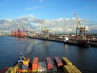 Container, Containerbrücken, Containerterminal, Europa, Hafen, Niederlanden, Rotterdam, Tiefseehafen Europas, Waalhaven, Waldundwiesenfee, Schifffahrt, Transport, Landschaft, Architektur