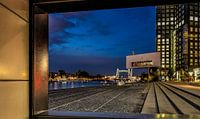 Uitzicht op de Koningshaven 's nachts, met een mooi verlichte brug' De Hef '.