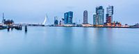 Stadsgezicht van de Erasmusbrug en de Kop van Zuid in Rotterdam tijdens het 'blauwe uurtje'.