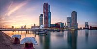 Een prachtig uitzicht op de ondergaande zon met op de voorgrond de Kop van Zuid - Rotterdam.