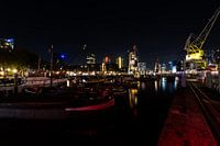 nachtopname van de skyline van rotterdam maar deze is vanuit de haven gemaakt