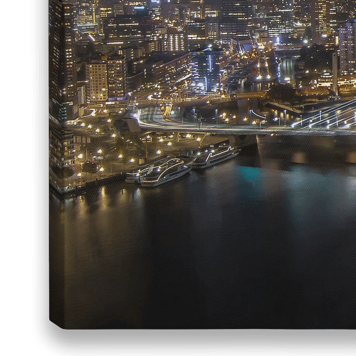 Koop de Rotterdam foto Rotterdam - Skyline - Erasmusbrug van PJS foto als print op canvas, aluminium dibond, (ingelijste) fotoprint, behang en ArtFrame. Voor jou op maat geprint in Fine-Art kwaliteit.