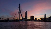 Zonsondergang met zicht op Centrum Rotterdam met oa de Erasmusbrug Zalmhaventoren.
