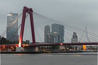 Rotterdam met uitzicht op de Willemsbrug met daarachter het kantoorgebouw van Deloitte, de Rotterdam en nog een stuk van de Erasmusbrug