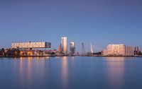 Skyline van Rotterdam met de Hef en de Maastoren net voor zonsopkomst.