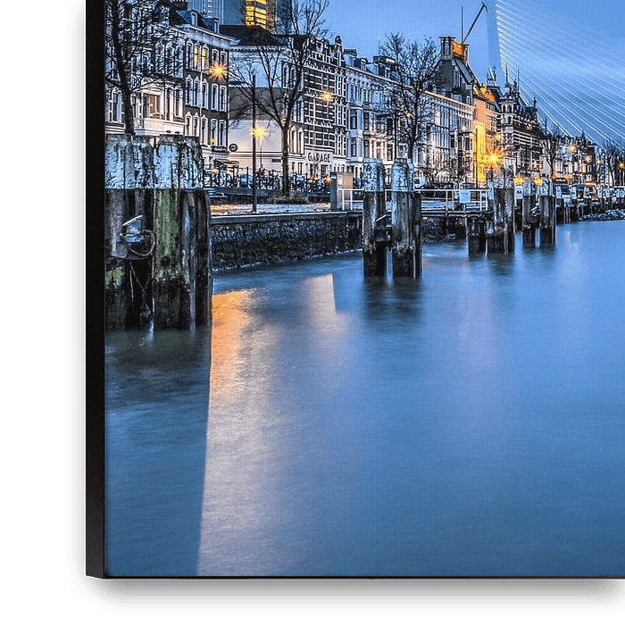 Koop de Rotterdam foto Rotterdam: de Nieuwe Maas in het blauwe uur van Frans Blok - foto's, kunst en andere wanddecoratie als print op canvas, aluminium dibond, (ingelijste) fotoprint, behang en ArtFrame. Voor jou op maat geprint in Fine-Art kwaliteit.