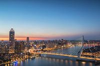 Zonsondergang in Rotterdam vanaf het dak van het WPC met de erasmusbrug op de achtergrond.