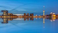 De skyline van rotterdam met de euromast tijdens het blauwe uur.