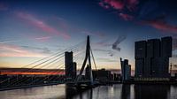 De Rotterdam en de Erasmusbrug in het vroege ochtendlicht net voor zonsopkomst.