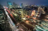 Een fantastisch uitzicht op de Markthal van Rotterdam, tijdens de avond op een koude winter avond. Je ziet het verkeer weer op gang komen met alle mensen die naar huis gaan. Een uniek kijkje vanaf boven op de mooie stad Rotterdam.