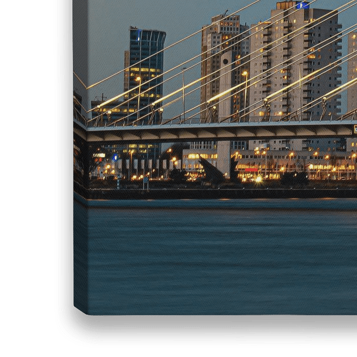 Rotterdam skyline gezien door de Erasmusbrug heen