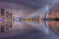 Na de zonsondergang was het 10 minuten even heel mooi ! Daarna kwam er dikke mist waardoor je de Erasmusbrug niet meer kon zien. Gelukkig kon ik de foto maken welke ik in gedachte had maar nooit heb kunnen maken. Door de mist kwamen er mooie kleuren en lichtstralen in de lucht. In Photoshop heb ik deze foto bewerkt tot een mooie fine art foto.