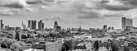 Rotterdam skyline in zwart wit gezien vanaf het Groot Handelsgebouw. Erasmusbrug, Erasmus MC.