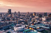Zonsondergang over Rotterdam vanaf Erasmus MC gefotografeerd.