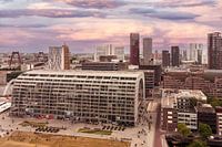Zocht op Rotterdam vanaf de Laurenskerk met de markthal op de voorgrond.