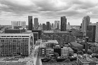 Skyline van Rotterdam met de Markthal onder een dreigende wolkenlucht.