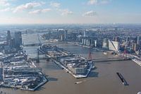 Een mooi gezicht: het centrum van Rotterdam met onder andere de Willemsbrug, de Hef, Noordereiland, Willemswerf en Erasmusbrug.