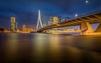 Zicht op de skyline van Rotterdam met de Erasmusbrug op de voorgrond.