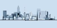 De grafische skyline van Rotterdam is in verschillende edities in deze webwinkel te vinden. Dit is een versie waarbij de torens, kranen en bruggen zich aftekenen in tinten verwant aan Bright Skies, in september 2021 door Flexa uitgeroepen tot kleur van het jaar.