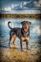 Rottweiler rashond staat in het water
