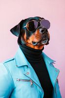 Met een casual zonnebril en een cool leren jack straalt deze Rottweiler onmiskenbare stijl uit. Zijn krachtige aanwezigheid in combinatie met een vleugje nonchalance trekt ieders aandacht. De fluweelzachte, glanzende jas harmonieert perfect met de chique outfit, waardoor hij eruit ziet als een standvastige trendsetter die in is voor elk…