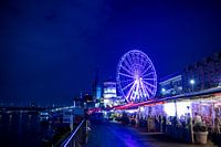Het Wheel of Vision in Düsseldorf verlichtte de lucht met prachtige blauwe kleuren tijdens de mooie kerstperiode.