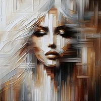 Ontdek de betovering van dit olieverfwerk, waarin het gelaat van een vrouw wordt gevangen in grove witte en gouden tinten. Haar serene expressie en verfijnde trekken komen tot leven op het doek, stralend met een tijdloze charme. Breng een vleugje rust en elegantie in je ruimte met deze verfijnde creatie.