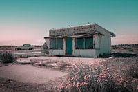 Vintage foto van oude werkplaats aan de route 66. Betreft een photoshop bewerking.
