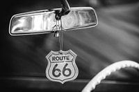 Oldtimer met hangend Route 66 symbool aan de spiegel