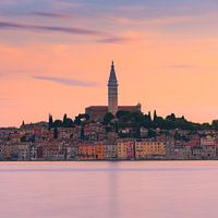 Zonsondergang in Rovinj, een stad in Kroatië gelegen aan de Noord-Adriatische Zee. Gelegen aan de westkust van het schiereiland Istrië.