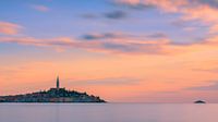 Zonsondergang in Rovinj, een stad in Kroatië gelegen aan de Noord-Adriatische Zee. Gelegen aan de westkust van het schiereiland Istrië.