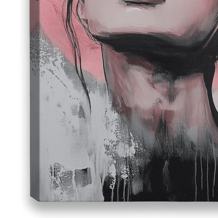 Dit schilderij straalt een diep gevoel van overgave en transcendentie uit. De vrouw houdt haar ogen gesloten, haar gezicht omhoog gericht, alsof ze zich laat meevoeren door een onzichtbare energie of innerlijke rust ervaart. De zachte penseelstreken en het subtiele kleurgebruik van roze, wit en zwart creëren een etherische, bijna…