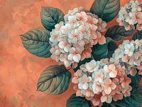 Details: hortensia schilderij, bloemenschilderij, botanische kunst, flora kunstwerk, hydrangea schilderij, tuinbloemen, romantisch interieur, serene decoratie, natuurlijke schoonheid, pastel bloemen